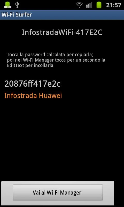 L'applicazione, in sostanza, calcola la password di default di una rete wireless di alcuni modem di provider come Fastweb e Alice, se la password viene modificata allora difficilmente riuscirete a risalirne.